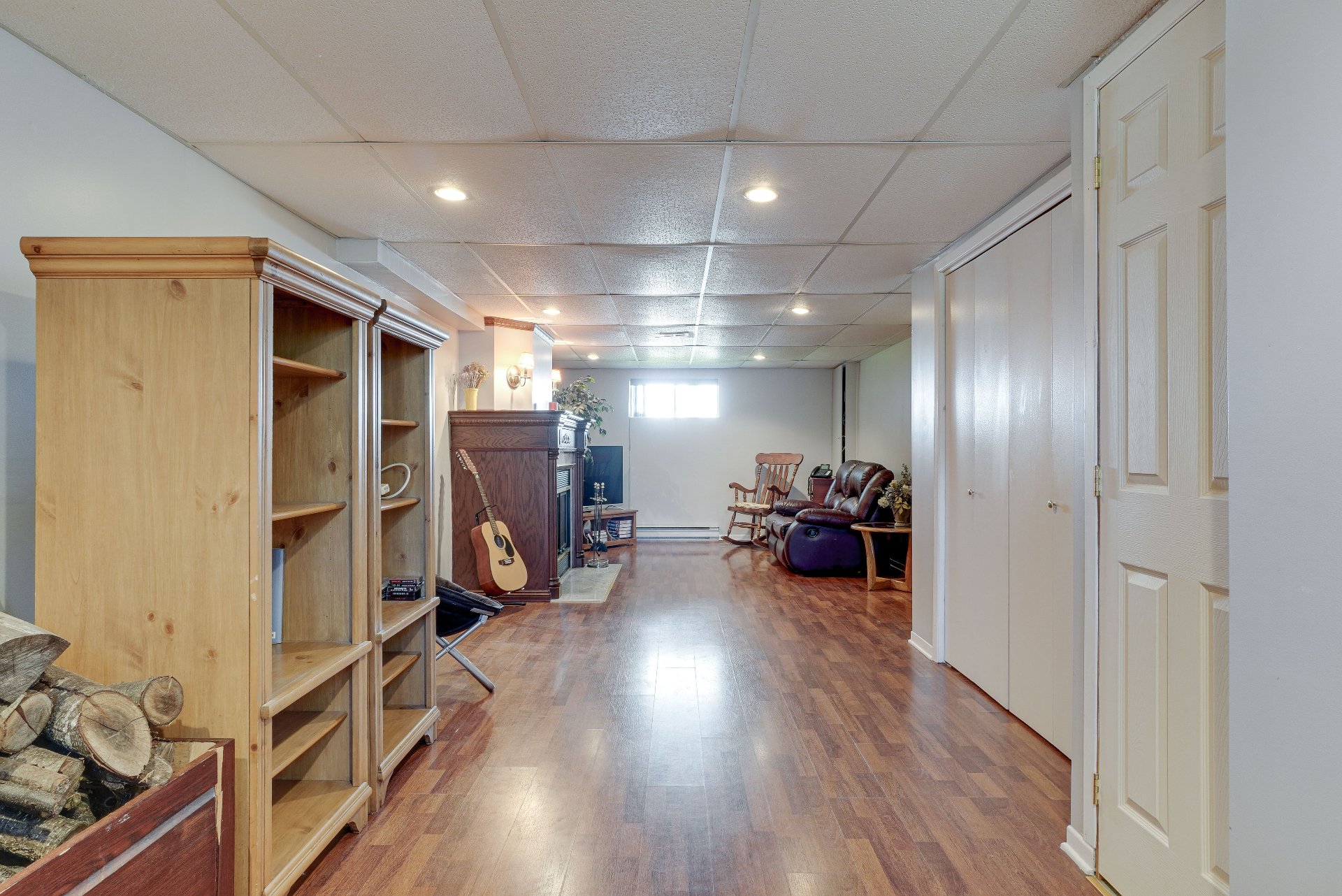 Rez-de-chaussée 2 chambres à coucher Salle de bain adaptée avec bain et douche sans seuil Cuisine avec armoires en bois (chêne) Salle à manger conviviale Salon lumineuxSous-sol Spacieuse salle familiale agrémentée d'un foyer au bois 1 chambre supplémentaire 1 salle de bain avec douche